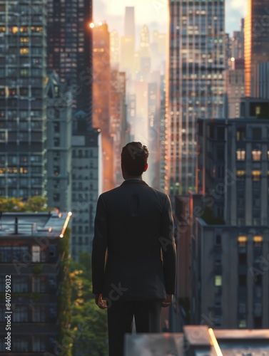 High-Rise Hustle: Businessman in the Concrete Jungle hyper realistic