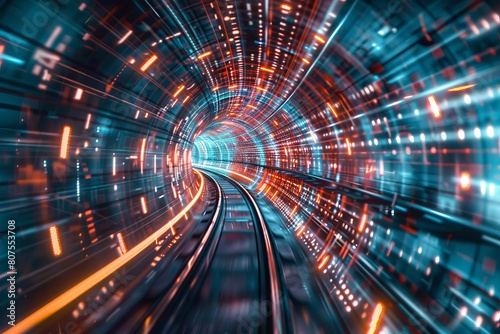 Highspeed motion blur through a futuristic digital tunnel, illustrating rapid data transfer