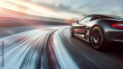 High-Speed Racing Car Blurring Through Track in High-Intensity Chase Scene