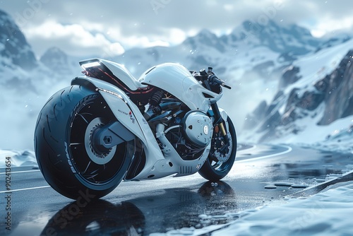 High-tech AI-equipped motorcycle on the road