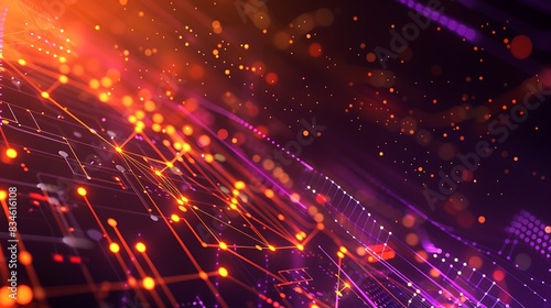 High-tech background with orange and purple dots and lines creating an intricate plexus network