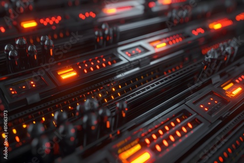 High-tech data center showcasing rows of active server racks with busy indicator lights, symbolizing the bustling EOS blockchain memory trading, network
