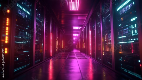 High-Tech Data Center with Glowing Servers - AI generated illustration