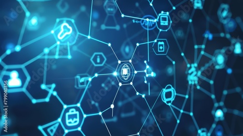 Hightech display of interconnected medical icons symbolizing advanced technological integration