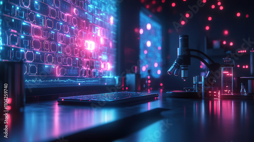 High-tech laboratory with glowing screens and equipment showcasing advanced research in progress. Generative AI