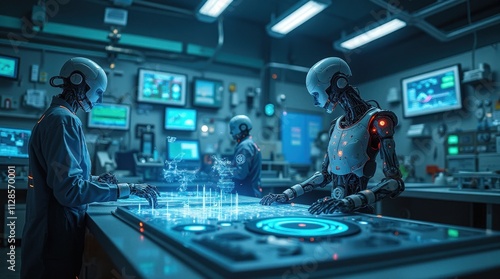 High-Tech Laboratory with Holograms and Advanced Robotics