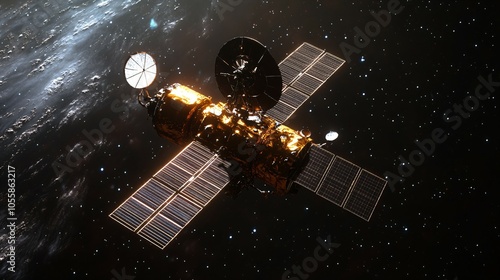 High-tech satellite in orbit with solar panels, symbolizing advanced space technology