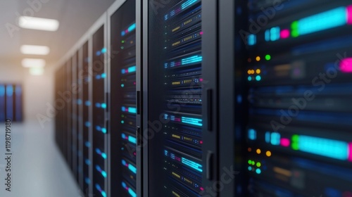 High-tech Server Racks in Fully Operational Data Center Setup, Fully Operational Server Racks are big concept.