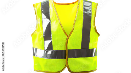 High-visibility reflective safety vest with silver tape, traffic use, Transparent background, PNG file