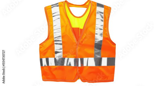 High-visibility reflective safety vest with silver tape, traffic use, Transparent background, PNG file