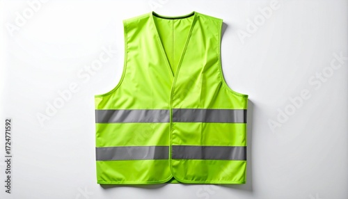 High-visibility safety vest with reflective stripes white background—bold clarity, protection, and readiness in motion.