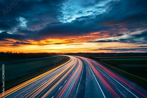 Highway at Sunset: Light Trails and Dramatic Sky