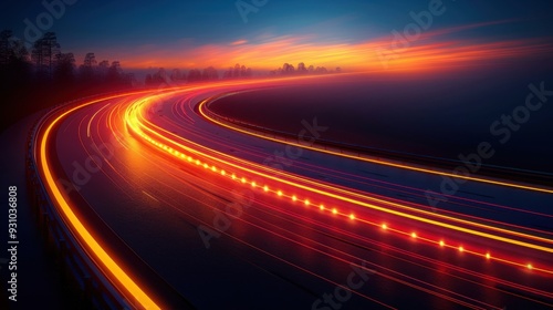 Highway Lights at Sunset