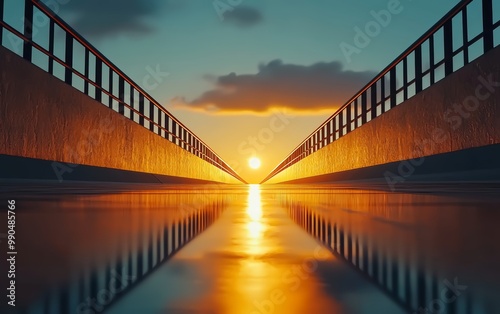 Highway stretches out endlessly under vibrant sunset skies, low-angle perspective, silhouette effect, cinematic feel, ultra-realistic detail, warm golden light, 8K resolution, perfect focus
