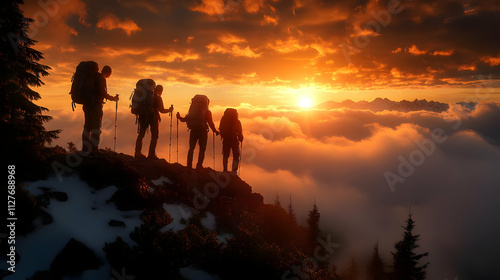 Hikers Reach Summit at Sunset, Epic Views Await