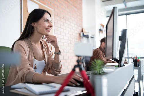 Hilarious smiling worker in office