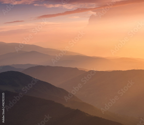 Hills lines during sunrise. Beautiful natural landscape