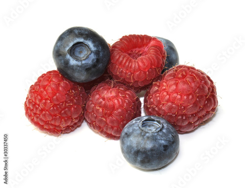Himbeere und Heidelbeere isoliert makro