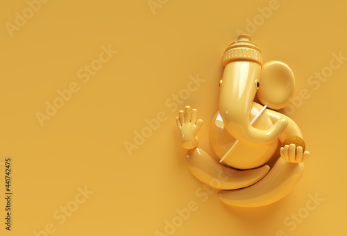 Hindu God Ganesha Statue- Hindu Religion Festival Concept Elephant. 3D Render illustration.