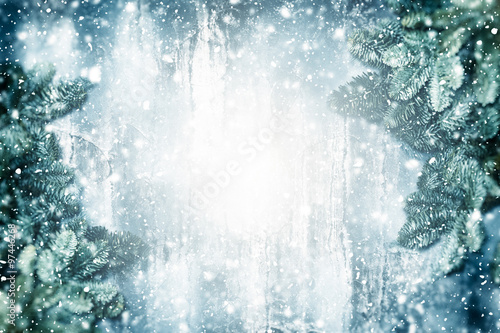 Hintergrund - Weihnachtscollage in silberblau mit Tannengrün