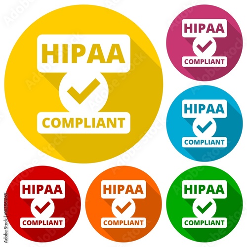 HIPAA badge - Health Insurance Portability and Accountability Act icons set with long shadow