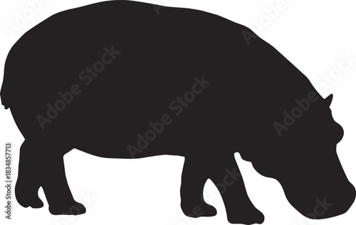 Hippopotamus Silhouette Side View – Grazing Hippo Vector Illustration at Ground-Level Angle, Isolated on Transparent Background