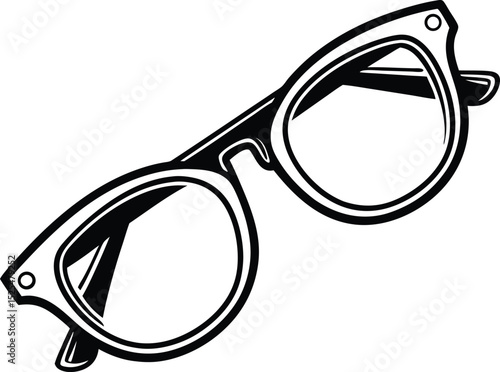 Hipster glasses silhouette, nerd eyewear icon, black rimmed vector
