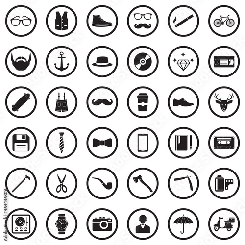 Hipster Icons. Black Flat Design In Circle. Vector Illustration.
