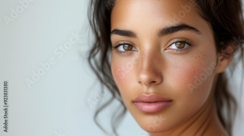 Hispanic Latina woman with glowing skin and soft makeup