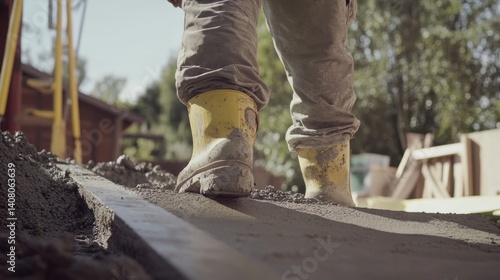 Hispanic mason constructing a concrete driveway. Featuring masonry and construction