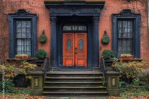Historic Brick House Entrance With Ornate Doorway