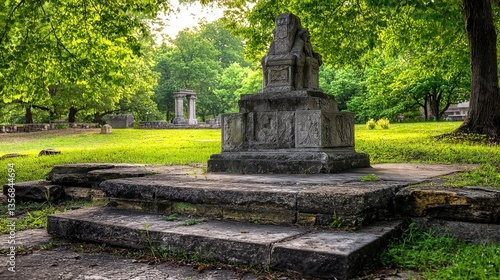 Historic monument surrounded by lush greenery local park photography tranquil setting close-up shot