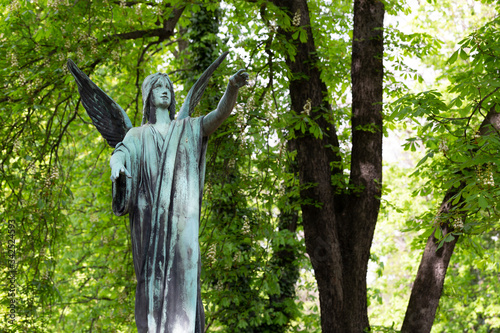 Historic Statue on the spring mystery old Prague Cemetery, Czech Republic