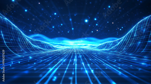 Hi-tech network connection featuring a grid of glowing blue lines, creating a sleek 3D technology-style banner. A futuristic vector illustration, ideal for technology or science event designs.