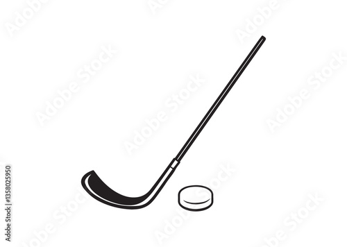 Hockey stick and puck silhouette vector Design