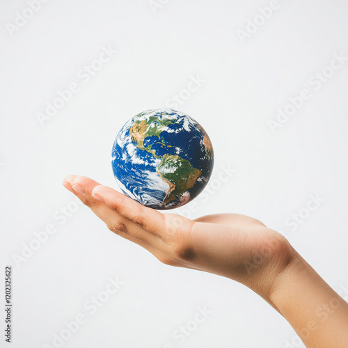 Holding a miniature globe in hand to symbolize global awareness and connection to the planet