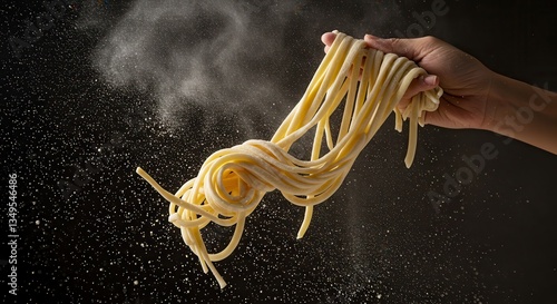 Holding Fresh Pasta with Flour Dusting on Dark Background