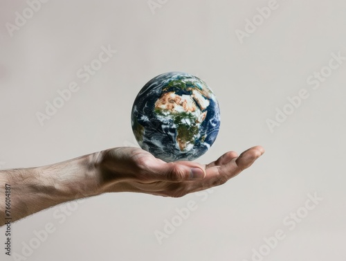 Holding the World: A hand cradles a delicate globe, symbolizing responsibility, care, and the interconnectedness of life. The image evokes feelings of hope, protection, and the fragility of our planet