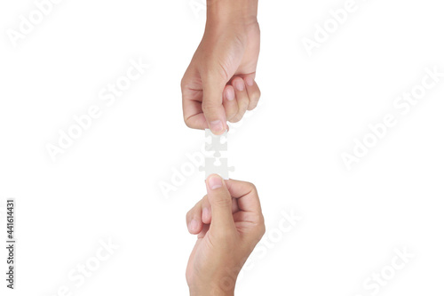 Holds in hand jigsaw puzzle. Business solutions success