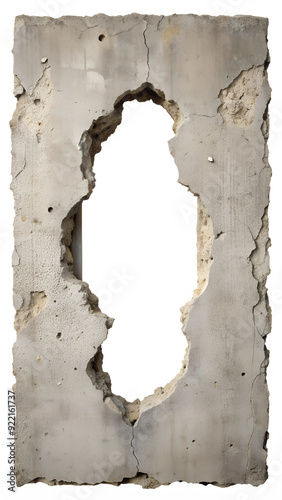 Hole in broken concrete wall on isolated background