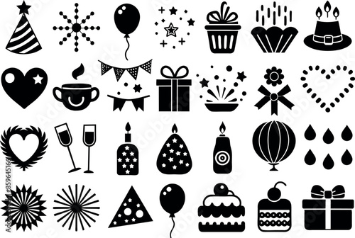 Holiday & Celebration related concept such as Fireworks, balloons, party hats & many more editable stroke outline icons isolated on white background flat vector illustration
