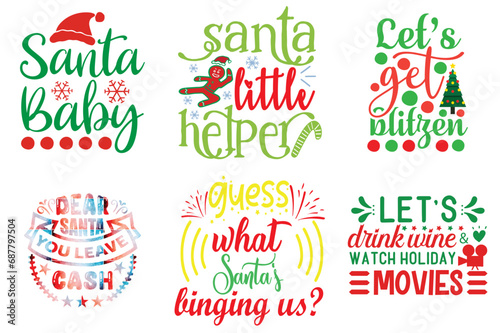 Holiday Celebration and Winter Hand Lettering Bundle Christmas Vector Illustration for Gift Card, Advertisement, Printable