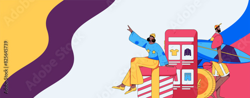 Holiday shopping people doing e-commerce online shopping flat vector concept operation hand drawn illustration
