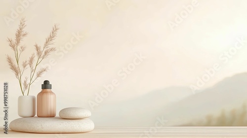 Holistic Health Retreats, wellness products and nature scenery, a tranquil retreat space, set against a warm earth tone background