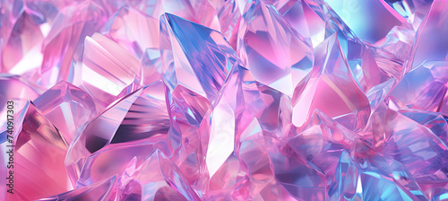 Holographic background with fairy crystal. Rainbow reflexes in pink and purple color.