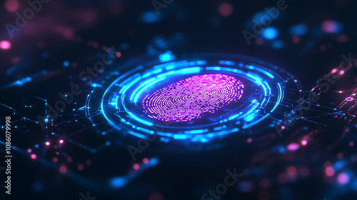 Holographic Fingerprint Icon, Biometric Security and Digital Identity"