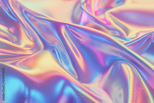 Holographic foil abstract background with pastel colors. Iridescent texture, shimmering surface, modern design, trendy gradient, soft light reflections, stylish backdrop.
