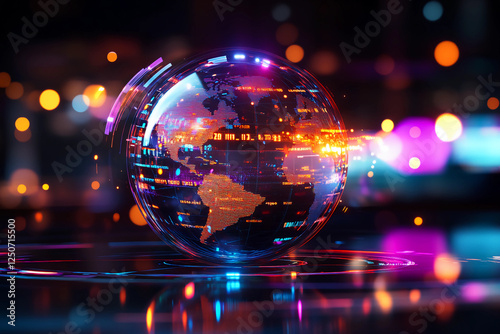 Holographic Globe Rotating in Mid-Air with Interactive Real-Time Data Points and Global Analytics, Showing Global Events, Trends, and Statistics in 3D