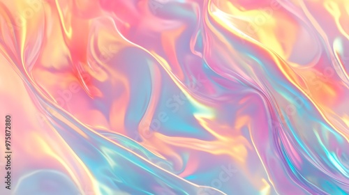 Holographic, iridescent background with pastel rainbow colors, fluid and flowing shapes