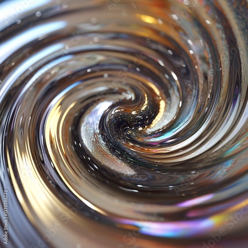 Holographic Liquid Metal Swirls Creating Iridescent Highlights in Futuristic Design
